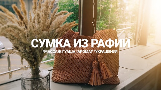 №45 Сумка из рафии с кожаным дном, массаж гуаша, аромат Белый персик и кориандр, баланс белого