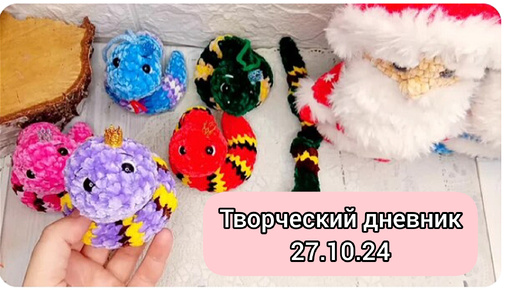 Змейки, дед Мороз, ёлочка. Вяжу много змеек на заказ. Для разнообразия связала одного котика. Творческий дневник 27.10.24