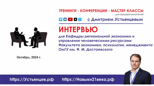 Интервью Дмитрия Устьянцева для Кафедры региональной экономики и управления человеческими ресурсами (ОмГУ им. Ф.М. Достоевского)