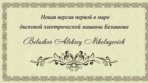 Новая версия первой в мире дисковой электрической машины Белашова.