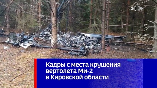 Кадры с места крушения вертолета Ми-2 в Кировской области