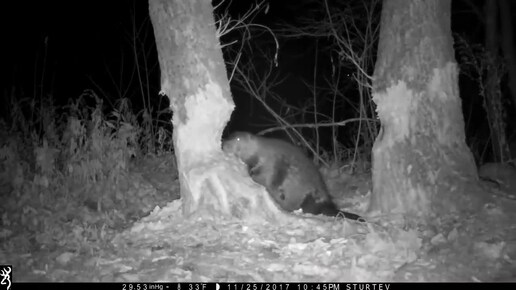 Бобёр рубит дерево ночью