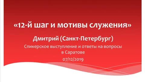 12 й шаг и мотивы служения Дмитрий Санкт Петербург Спикерское выступление С