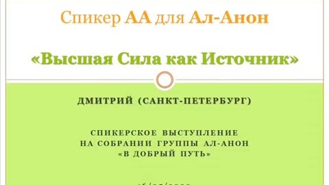 АА для Ал Анон Высшая Сила как Источник, Дмитрий Санкт Петербург Спикер на соб