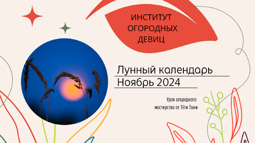 ЛУННЫЙ календарь. Ноябрь 2024. (Сеем семенами).