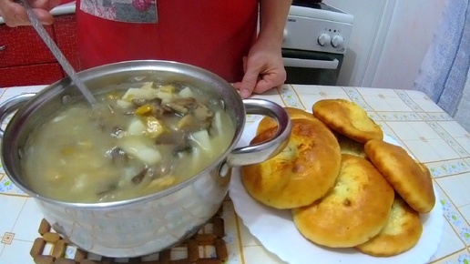 Живём в деревне. Суп грибной, всеми любимый. Шанежки со сметаной к чаю. Деревенская еда.