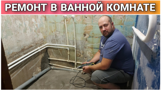 Начал делать ремонт в ванной комнате/Провёл сантехнику/Положил плитку на пол/Сделал подиум под душевую кабину