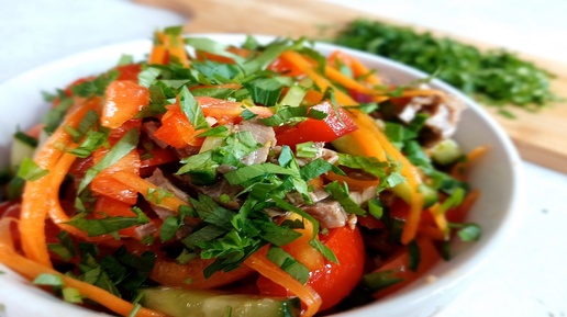 Сытный и сочный салат с овощами и мясом. Рецепт для тех, кто не любит салаты с майонезом