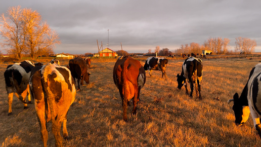 Деревенские КОРОВЫ! Завели телят в сарай! Снег идет!