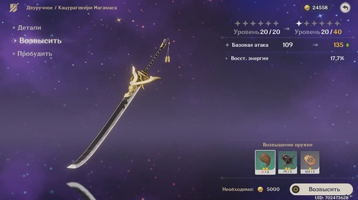 [PC] [200] Genshin Impact 2.0 - Чертёж на Двуручный меч "Кацурагикири Нагамаса"