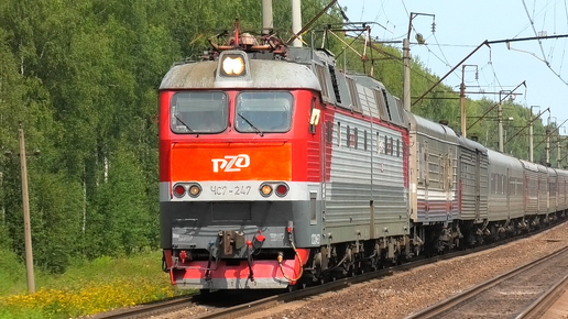ЧС7-247 с пассажирским поездом Воркута — Москва следует через о.п. 306 км