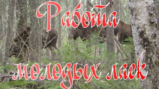 Работа пары молодых западносибирских лаек по группе лосей.
