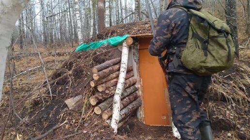 Жизнь в таёжной землянке .