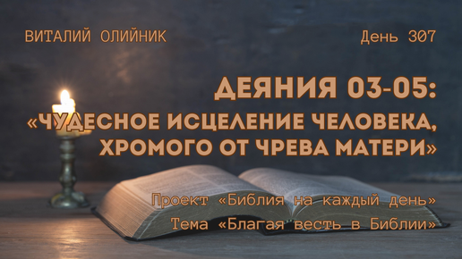 День 307. Деяния 03-05: Чудесное исцеление человека, хромого от чрева матери | Библия на каждый день | Благая весть в Библии | В. Олийник