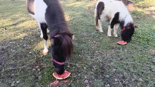 Ляля, Варя и арбуз #животные #pets #animals #питомцы #лошади #лошадь #пони #horse #pony #zoo #funny