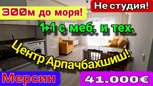 1+1 с меб. и тех. за 41.000 евро! 300 м до моря! Центр Арпачбахшиш! Мерсин. Турция.