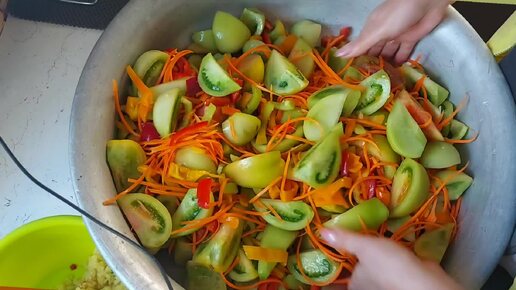 САЛАТ ИЗ ЗЕЛЁНЫХ ПОМИДОР...ОЧЕНЬ ВКУСНО 😋