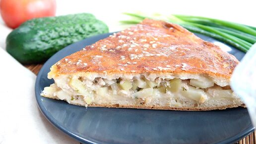 Пирог из дрожжевого теста с фаршем и картофелем в духовке