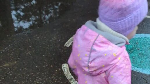 Даришка довольная! С подарком и по лужам!