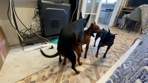 Три собаки в доме. Как они развлекаются и что делают круглые сутки напролёт. Цвергпинчер Лакоста Лисица и Мальта. Две сестры и пассажирка