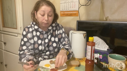 Ем_дома, яичница с жареной курицей🍗