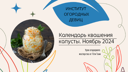Календарь КВАШЕНИЯ капусты. Ноябрь 2024 г.
