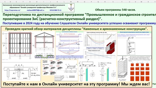 Переподготовка ПГС: проектирование ЗиС. Обзор дисциплины «Каменные и армокаменные конструции».