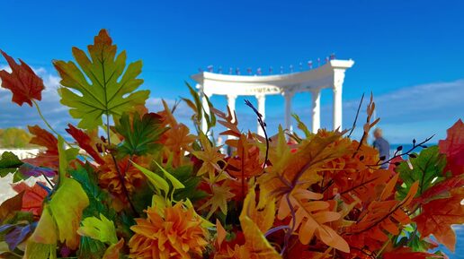 Осенняя Алушта: Фонтан "Рыбак", памятник "Цесаревич Николай и принцесса Алиса", Набережная в осеннем убранстве. 28 Октября. Крым 2024.