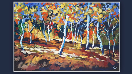 Рисуем осень МАЗКАМИ гуашью на ЧЕРНОЙ бумаге.
