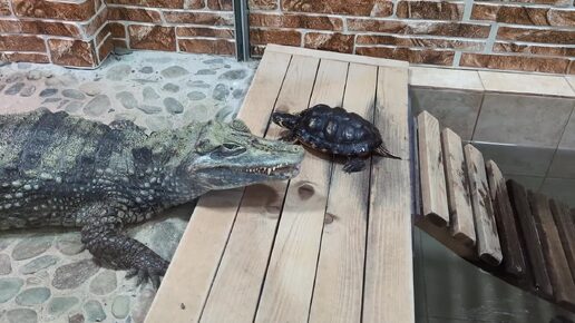 🐢 Продолжая тему еды: что вкуснее, черепаха или курица?🐊 Крокодиловый кайман знает ответ.