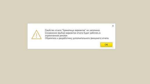 1С 8: Свойство отчета "Хранилище вариантов" не заполнено. Пример исправления