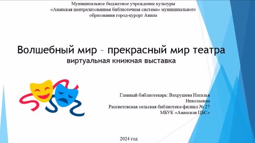 НОЧЬ ИСКУССТВ 2024: Выставка-презентация «Волшебный мир прекрасный мир театра»