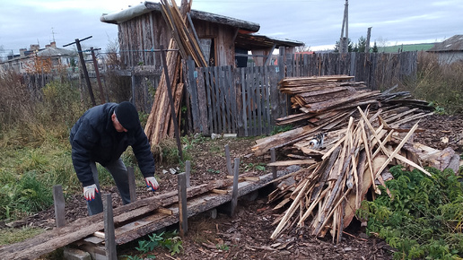 Иваныч пилит дрова. Бензопила в действии.