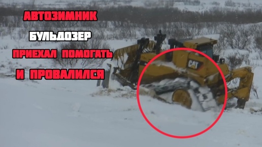 Автозимник! Приехал помогать, но стянуло! Выехал на 48 тонном бульдозере CAT D9R на наклонную наледь и ушел в кювет!
