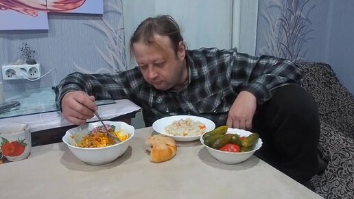 Осеннее утро в Сибири Хотел приготовить плов в мультиварке получилась рисовая каша Вкусно кушаю кашу с салатом и булочкой с повидлом