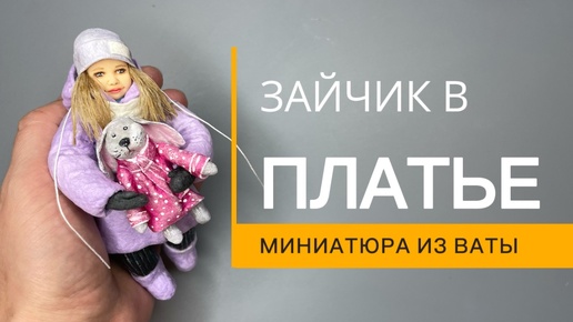 Зайчик в ручки ватной игрушке. Миниатюра для ватной игрушки Зайчик. Зайчик в платье из ваты. Ватная игрушка для ватной игрушки.