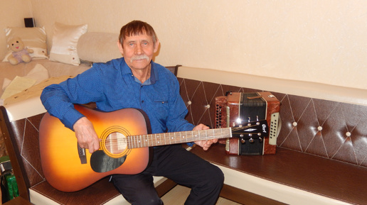 Учиться начал на пенсии, без нот. Самоучка. Репетиция у мужа...Я за кулисами...Смотрит в камеру.