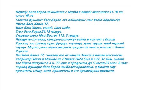 31.10 по 18.11 период Всего Хорошего. Время Бога Хорса