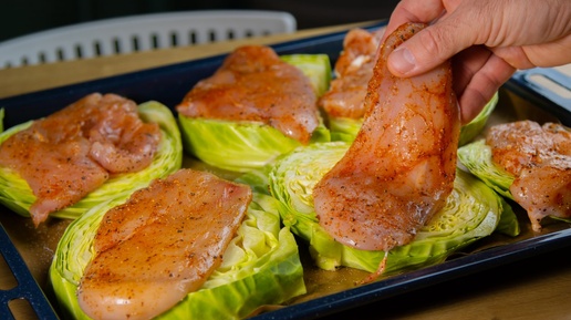 Супер простой рецепт на ужин! Капуста с курицей в духовке.
