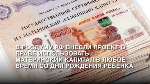В Госдуму РФ внесли проект о праве использовать материнский капитал в любое время (2024-10-31)