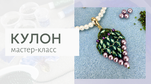 Плетение из бисера и бусин GemDuo (джемдуо), кулон "Гроздь винограда"
