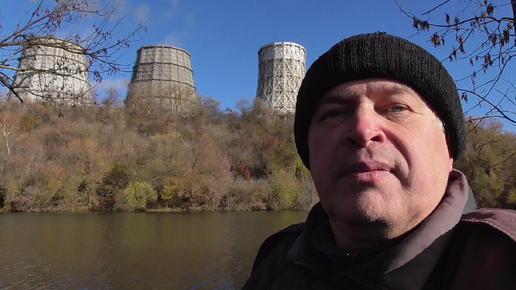 Осень 2024 год, река Ока и орловская ТЭЦ. Я на берегу в городе, город Орёл