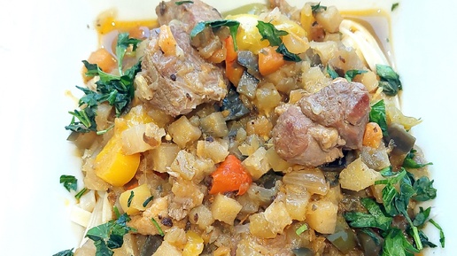 По мотивам лагмана. Наваристое блюдо из баранины, овощей, спагетти (лапши).