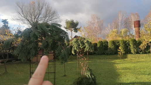 Сосновые ветки для украшения сада зимой под новогодние гирлянды и шары на арках и шпалерах.