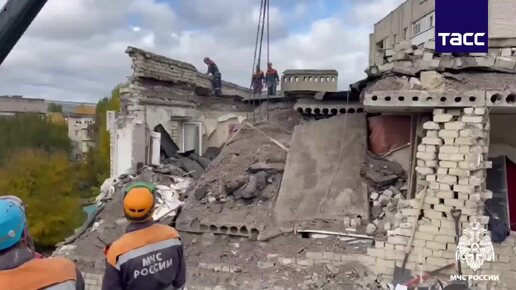 Кадры работы спасателей МЧС на месте обрушения этажей дома после взрыва газа