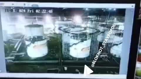 Кадры удара беспилотника по нефтебазе в Ставропольском крае.