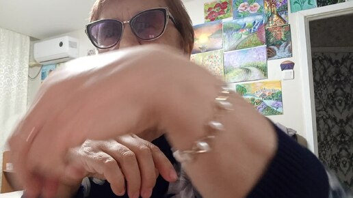 Золотое кольцо и золотой браслет с бриллиантами и жемчугом сделала сама.