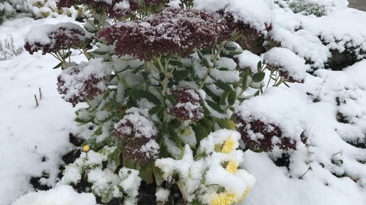 Первый снег 1.11.24 Цветник возле моего магазина.