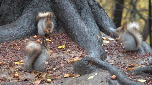 Дождь и голодные белки