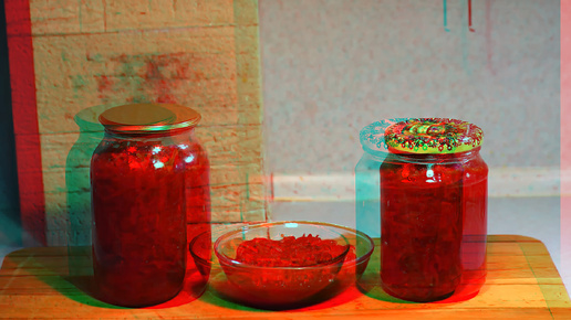 3D stereo red-cyan Консервация Свекольная заправка для борща. Как сделать заправку для борща